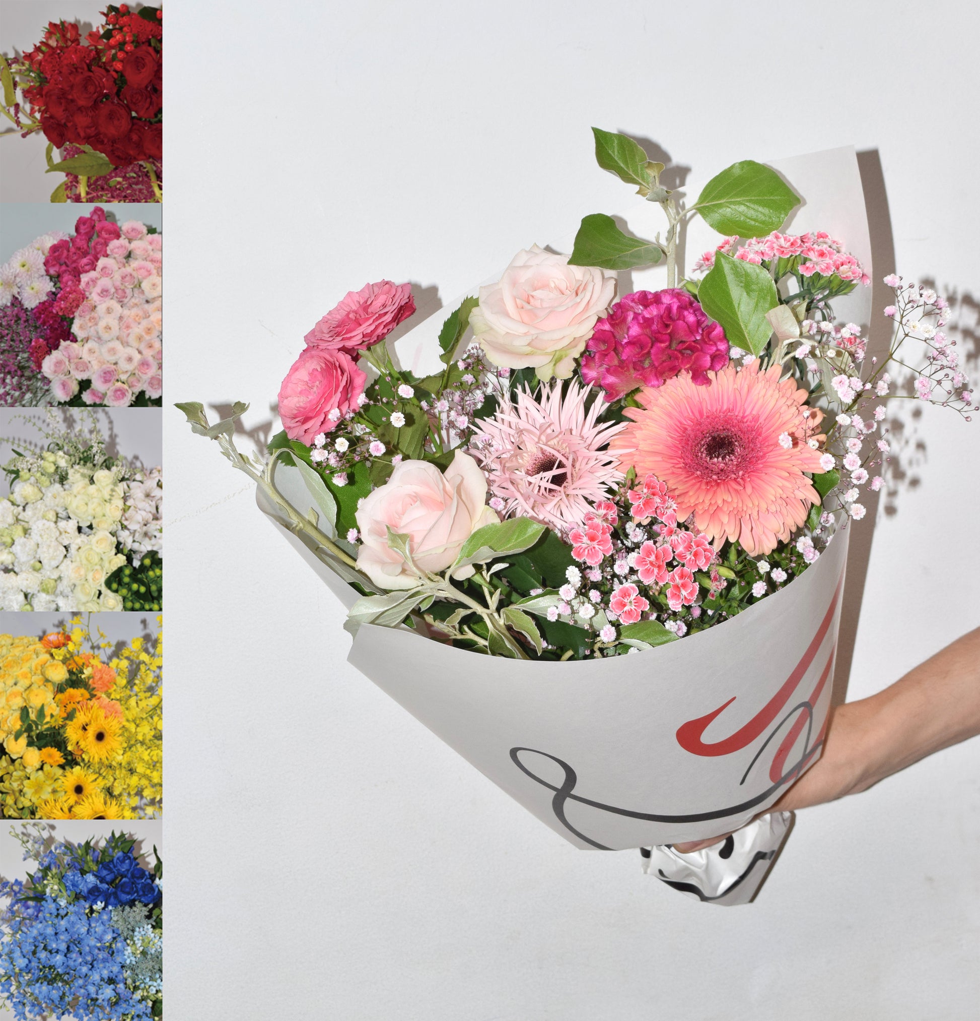 花の種類はおまかせになります(※写真はイメージです。仕入れ状況により花材は変動します)。
