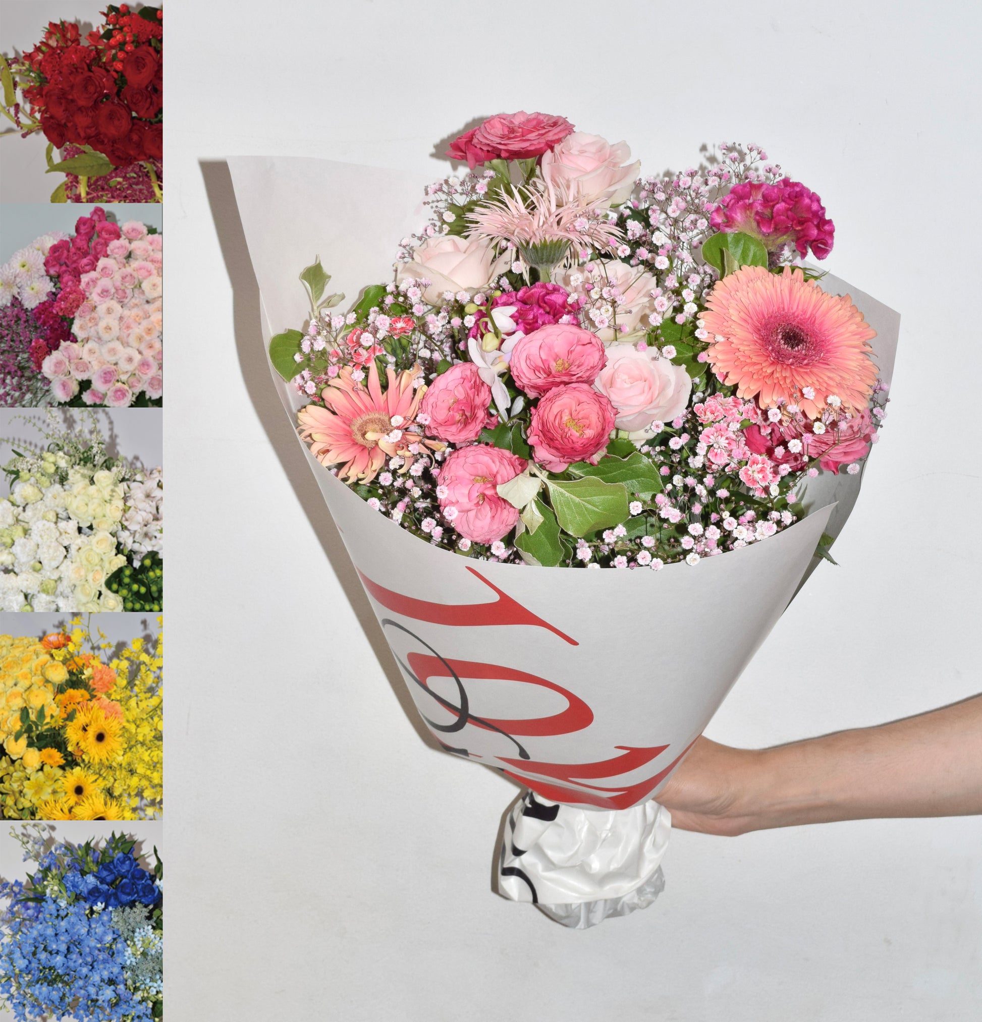 花の種類はおまかせになります(※写真はイメージです。仕入れ状況により花材は変動します)。