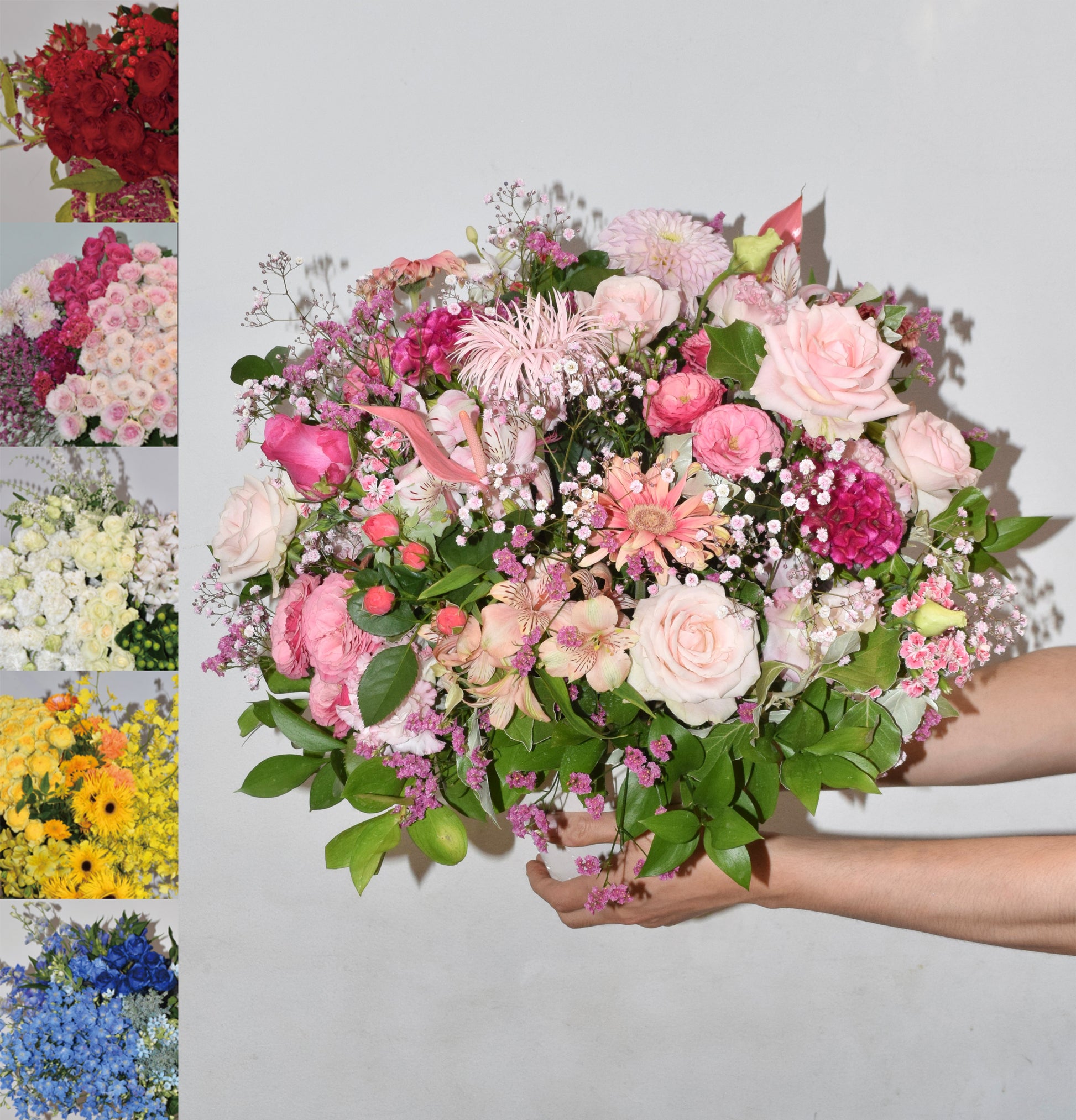 花の種類はおまかせになります(※写真はイメージです。仕入れ状況により花材は変動します)。
