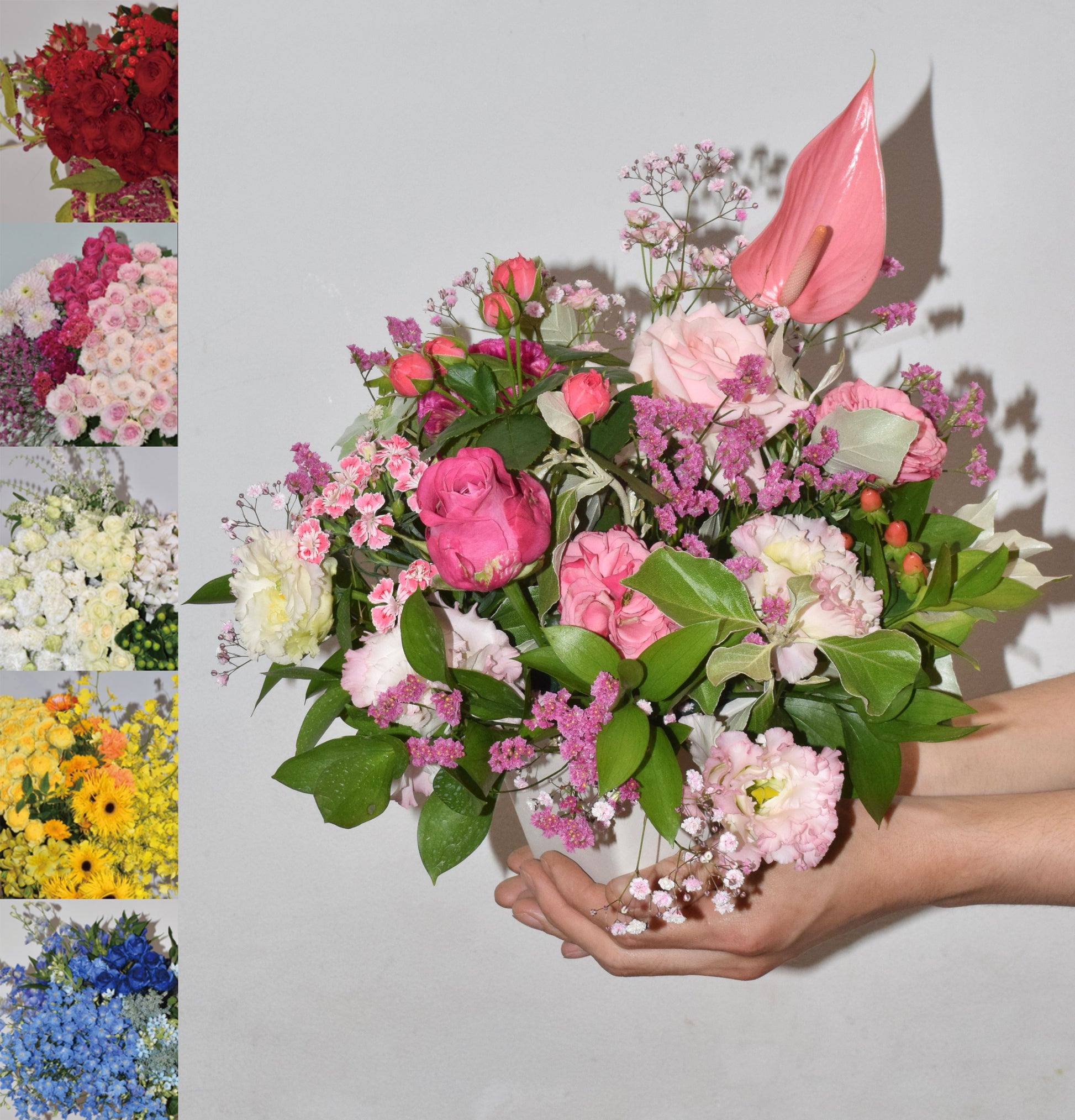 花の種類はおまかせになります(※写真はイメージです。仕入れ状況により花材は変動します)。